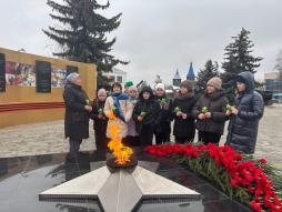К торжественному мероприятию зажжения вечного огня в округе присоединились обучающиеся творческого объединения. Юные краеведы. Ребята почтили память героев, возложив цветы к Вечному огню.